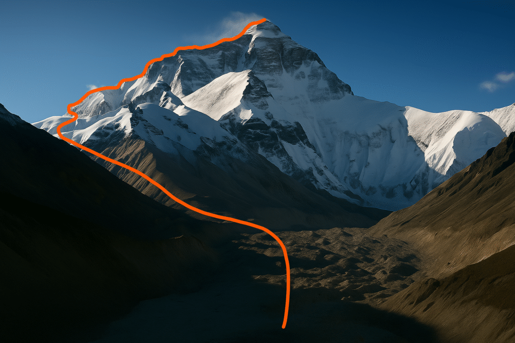 Everesto viršūnė – aukščiausias planetos taškas. Dėl vėjo ir žemo deguonies kiekio čia užsibūnama vos kelias minutes prieš leidžiantis žemyn.