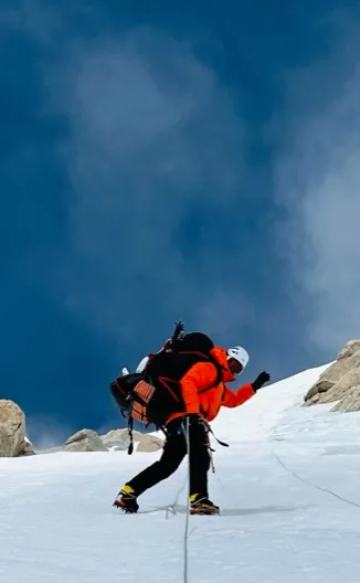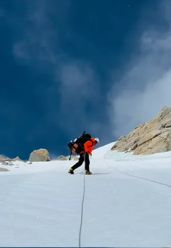 Prasidėjo viskas nuo ankstyvo ryto, kai dar tamsoje užsidėjau kuprinę ir ant ledyno pasitikau pirmuosius saulės spindulius. Ledo kirvis skambėjo įtemptame ritme, o sniego traškesys po spaudžiamais kampinomis buvo tarsi priminimas, jog čia šeimininkauja gamta – ne žmogus.